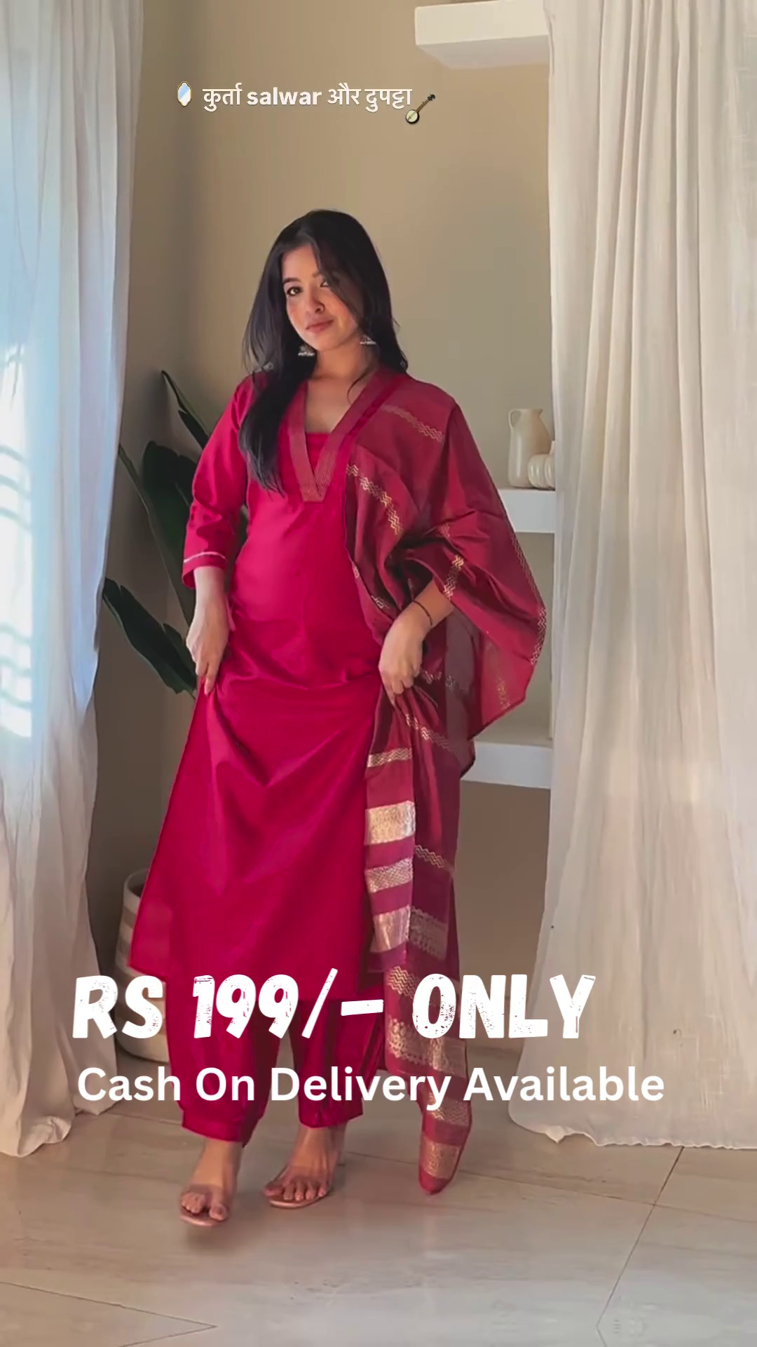 This sophisticated yet understated kurta salwar set combines traditional styling with contemporary elegance. The vibrant magenta shade is complemented by delicate golden accents on the dupatta, creating a balanced festive look. The comfortable silhouette makes it perfect for day-long wear during special occasions while maintaining a graceful appearance.
