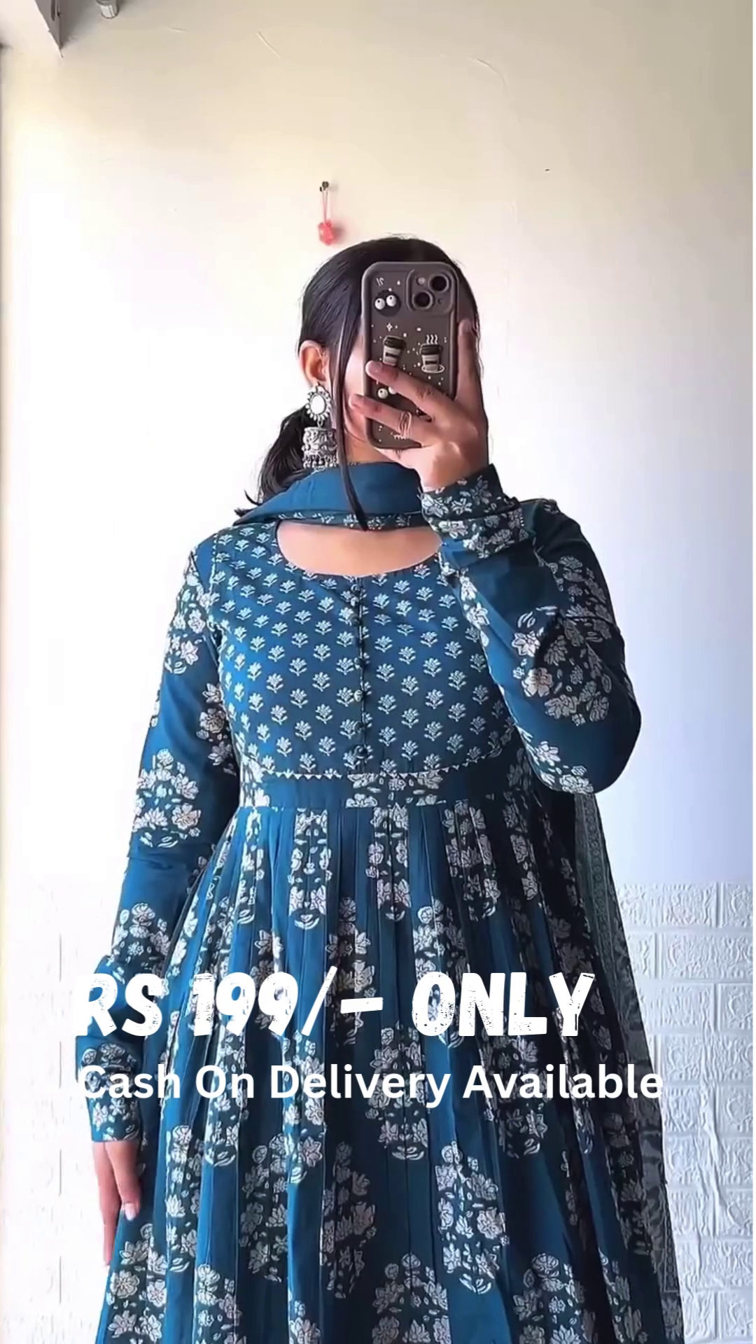 Design & Craftsmanship: This beautifully flared Anarkali set features an intricate traditional print in deep maroon, enhanced with striking blue and beige accents. The pleated yoke design adds a flowy elegance, while the unique sleeve cuffs offer a touch of contrast for a refined appeal. The V-neckline elevates the overall look with a graceful touch.
