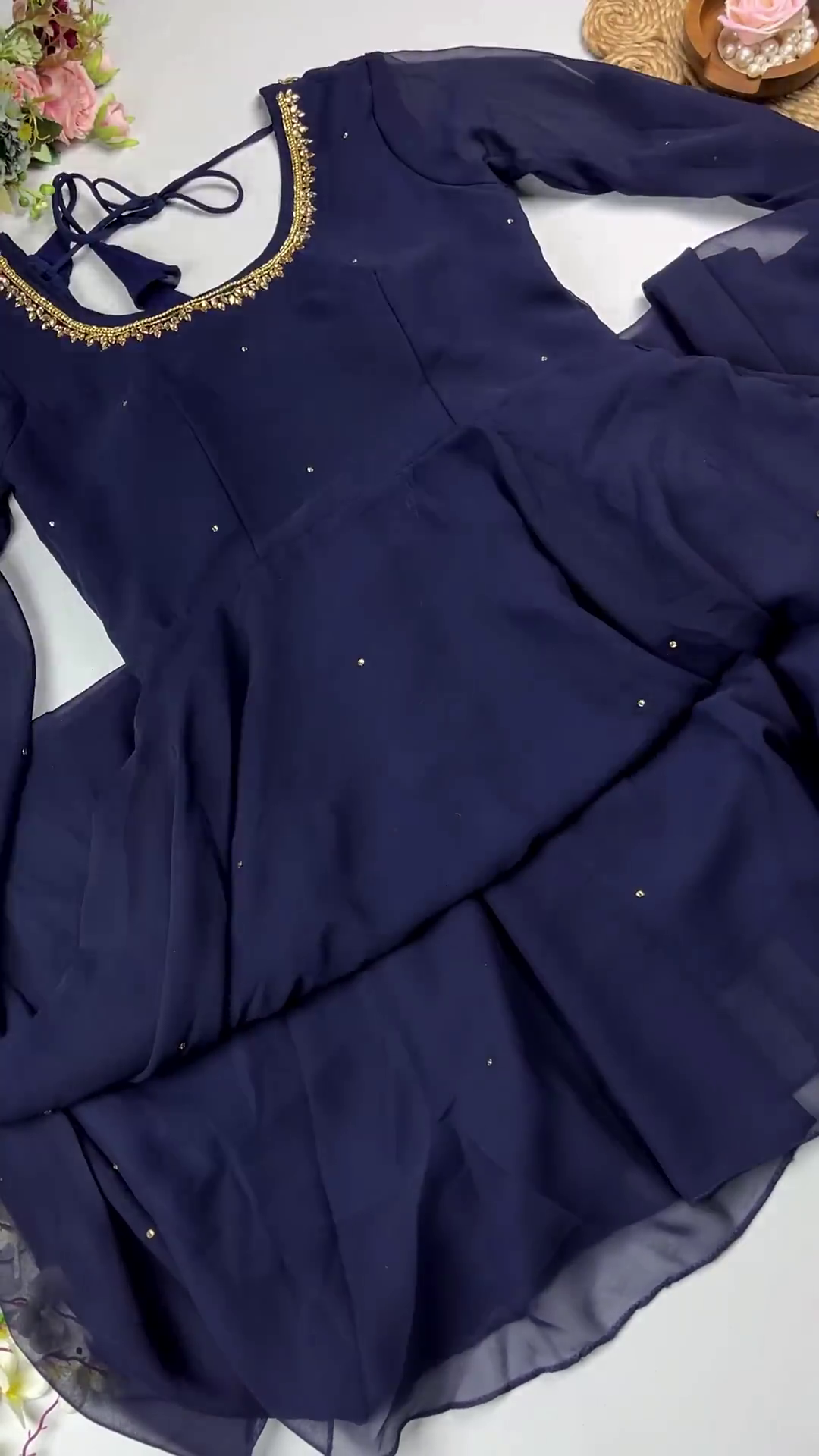 ✔️ Graceful Silhouette: Showcases a flowing Anarkali cut that provides a structured yet airy ethnic profile.