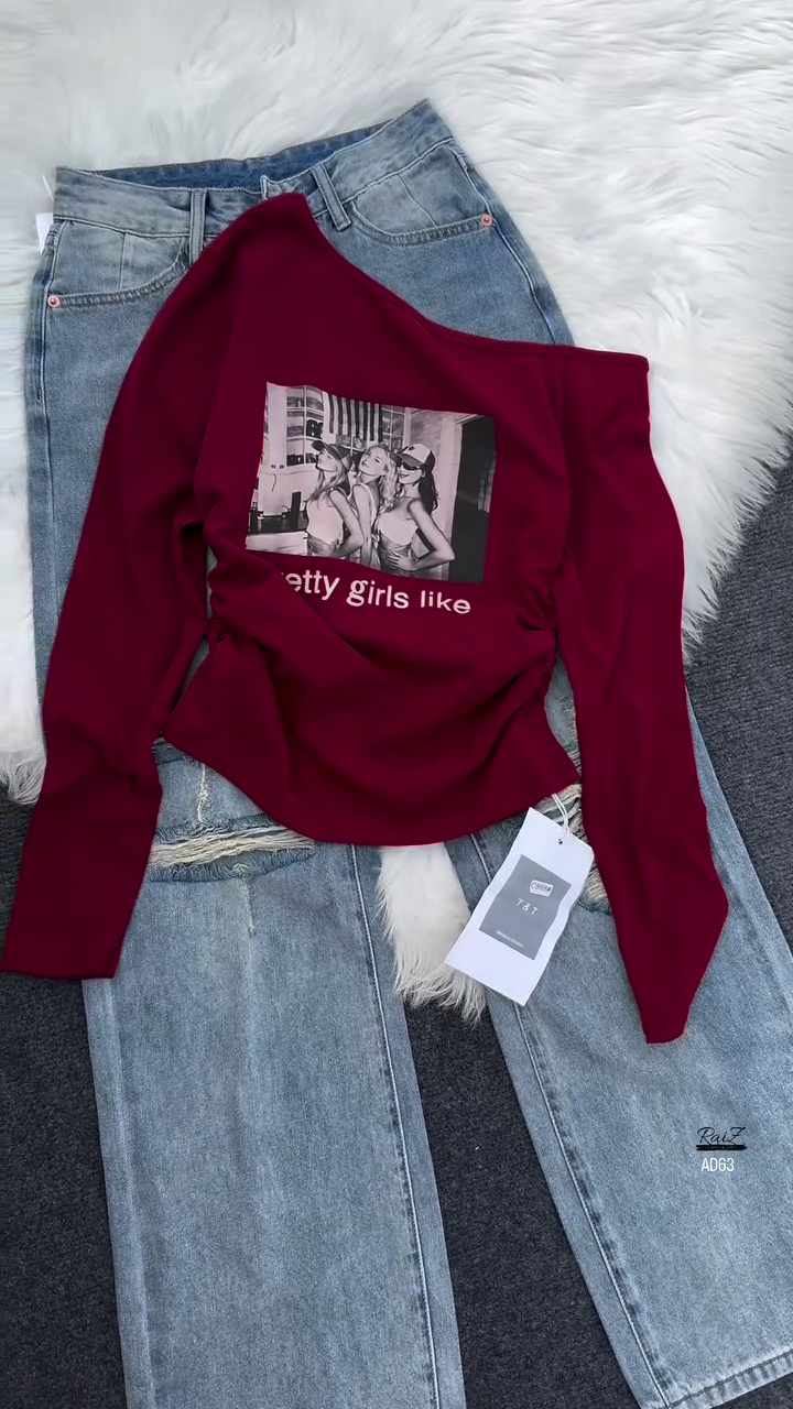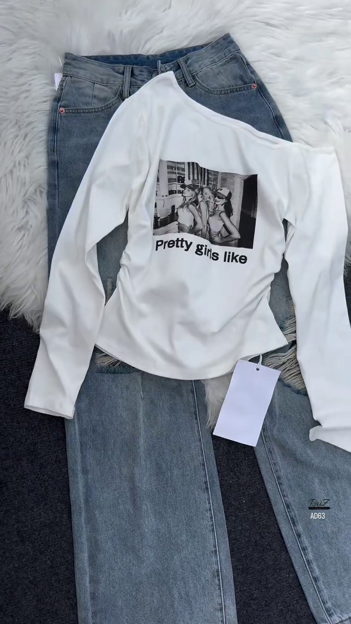 This tee pairs effortlessly with denim, as shown with classic blue jeans, but can also be styled with skirts, shorts, or joggers depending on your mood. Whether you’re heading to a casual outing, running errands, or simply enjoying a relaxed day, the AD63 Grey Graphic Long Sleeve Tee ensures you look stylish without compromising on comfort.