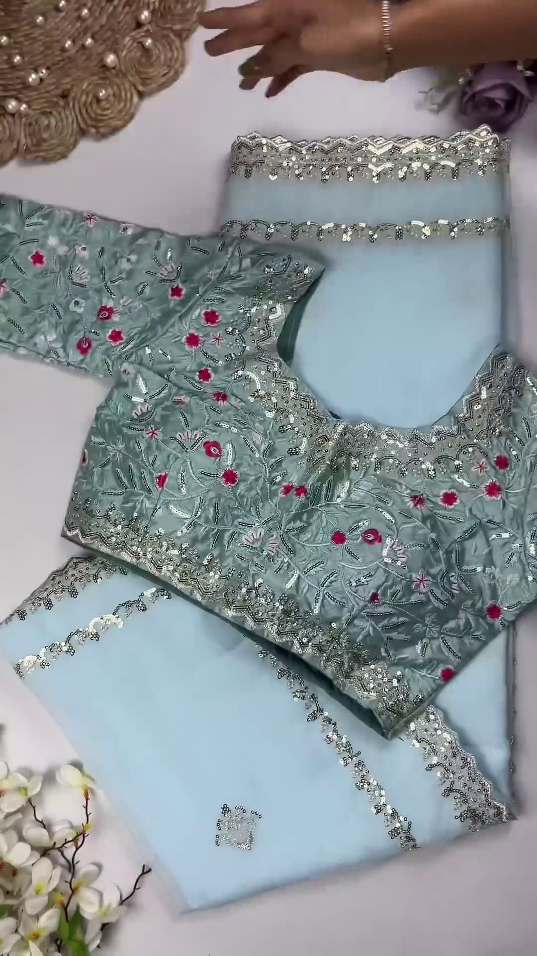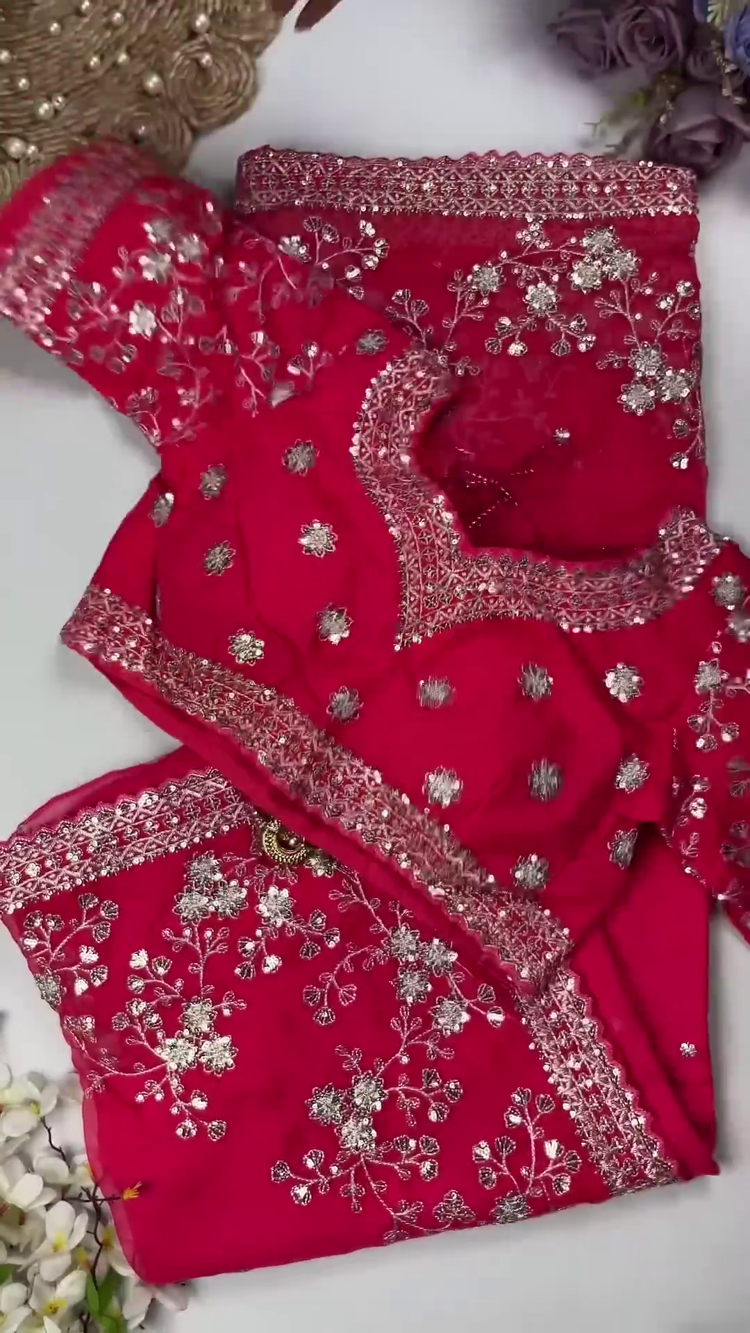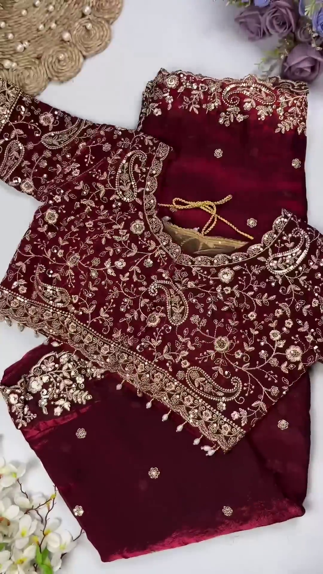 Royal Purple Heavy Embroidered Designer Blouse with Sequin Dupatta Set